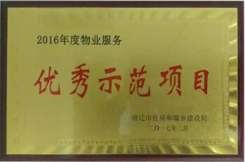 另外,我司在管的雙良鴻城灣小區(qū)獲得宿遷市住房和城鄉(xiāng)建設(shè)局頒發(fā)的2016年度“優(yōu)秀示范項目”榮譽稱號。